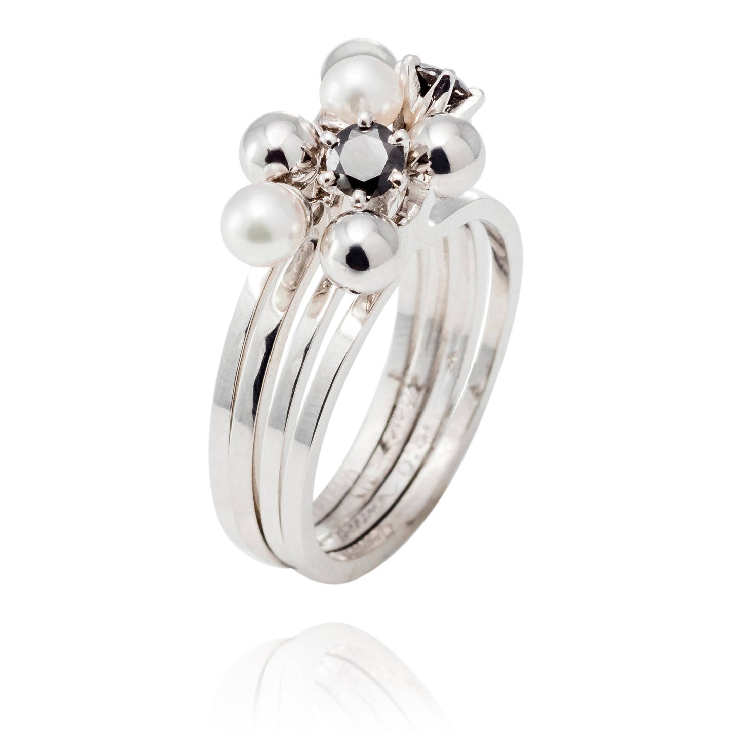 Tale about the ring combination 2 white gold 1 white gold white pearls 1 white gold black brilliants