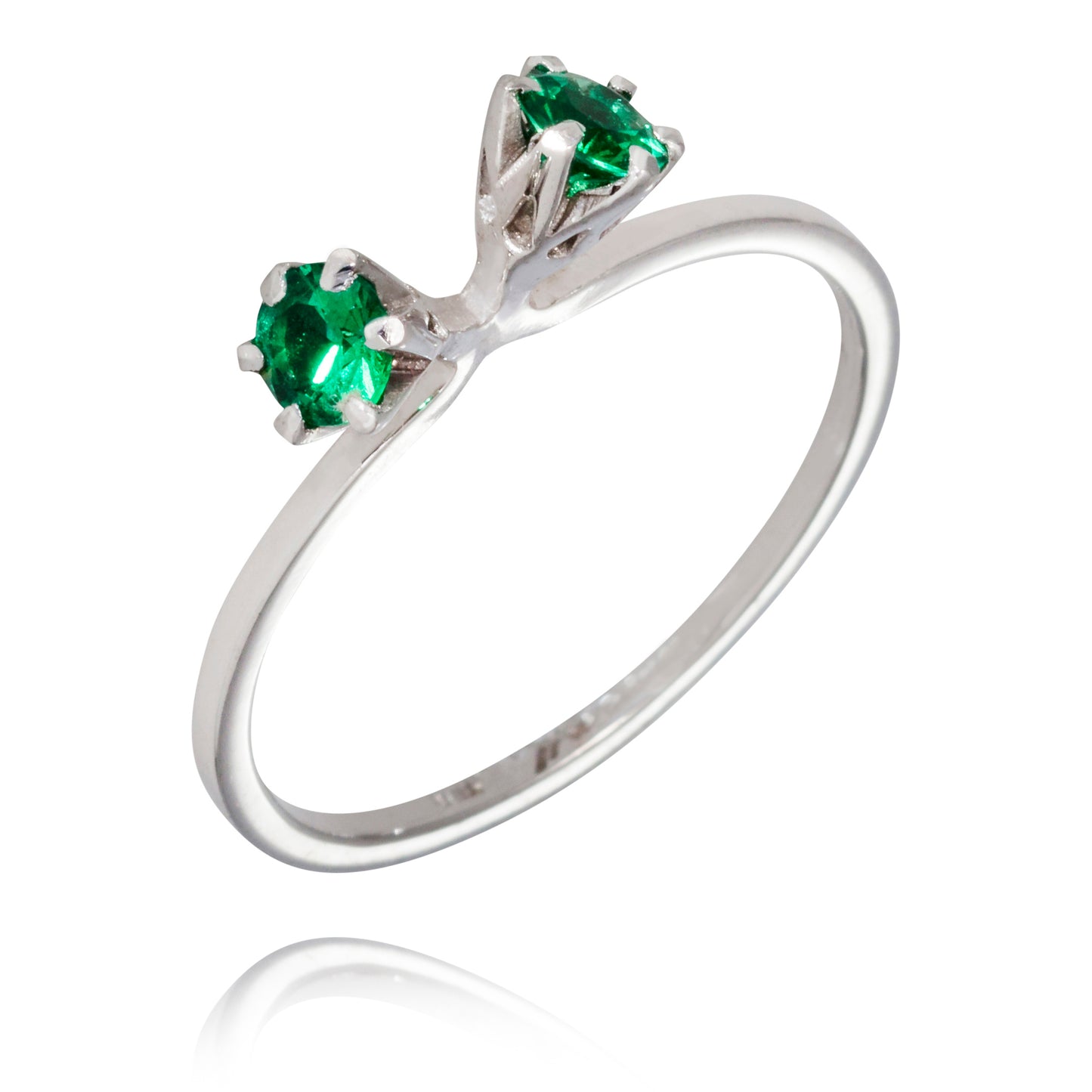 1 st ring i vitguld (18K) med infattade briljantslipade gröna Smaragder.