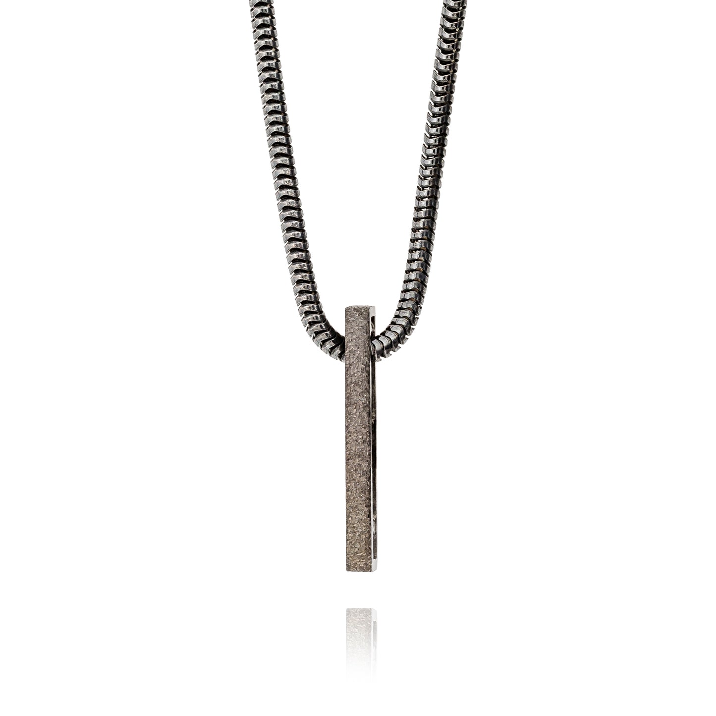 Kort hänge i svartrhodinerat silver.